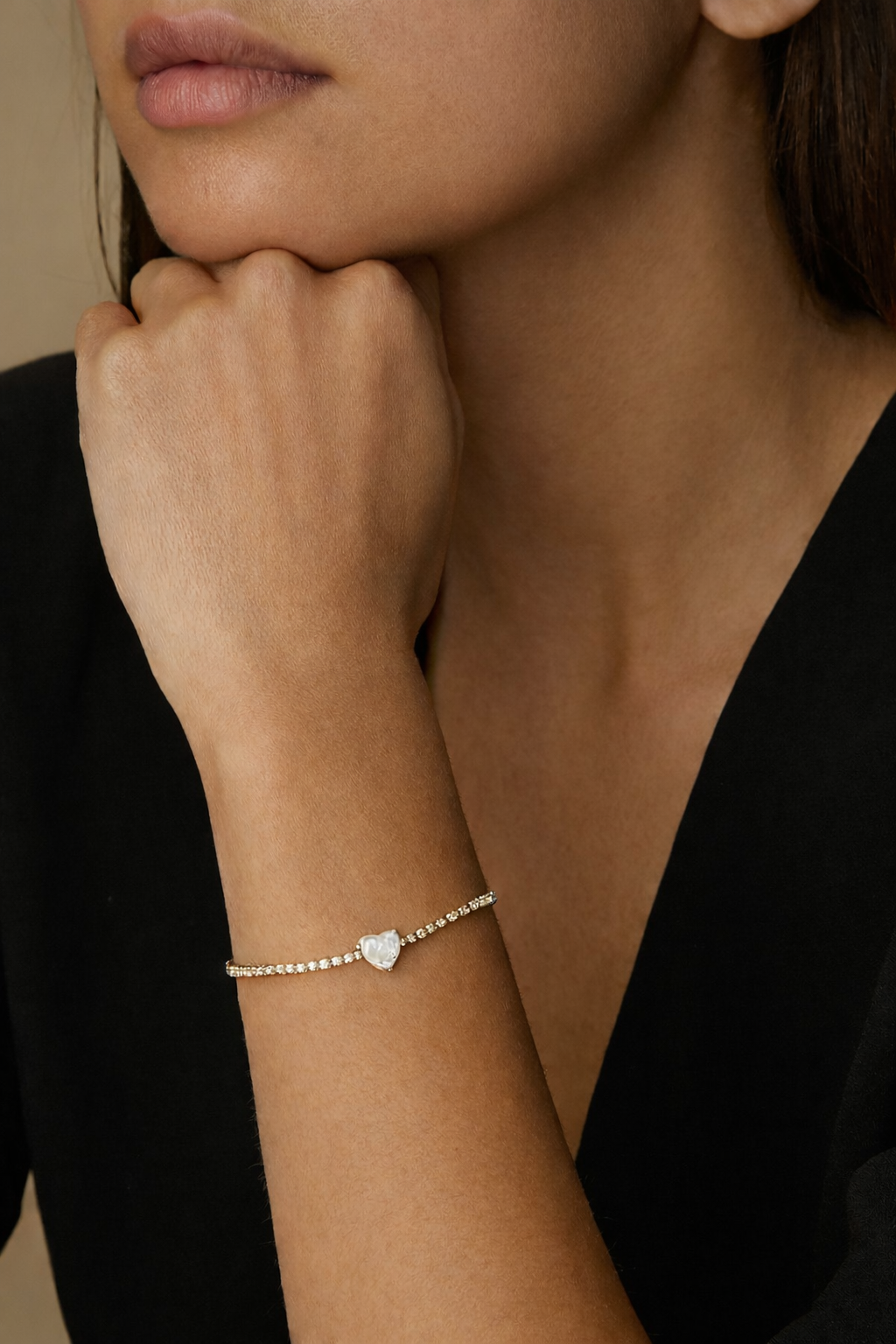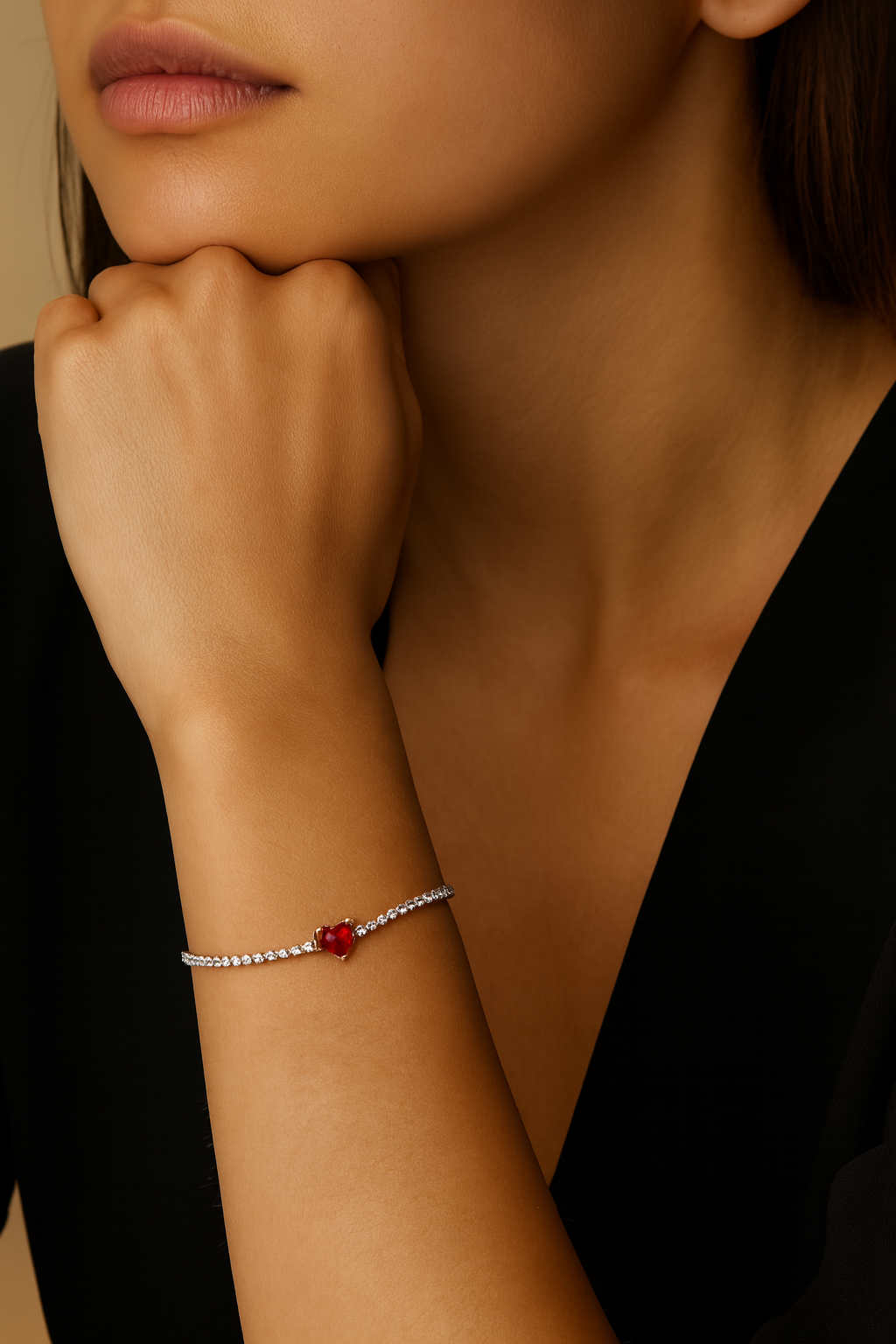 Style : Bracelet tennis avec cœur central